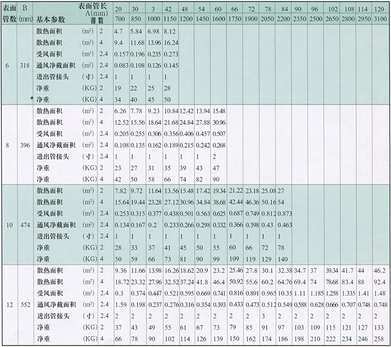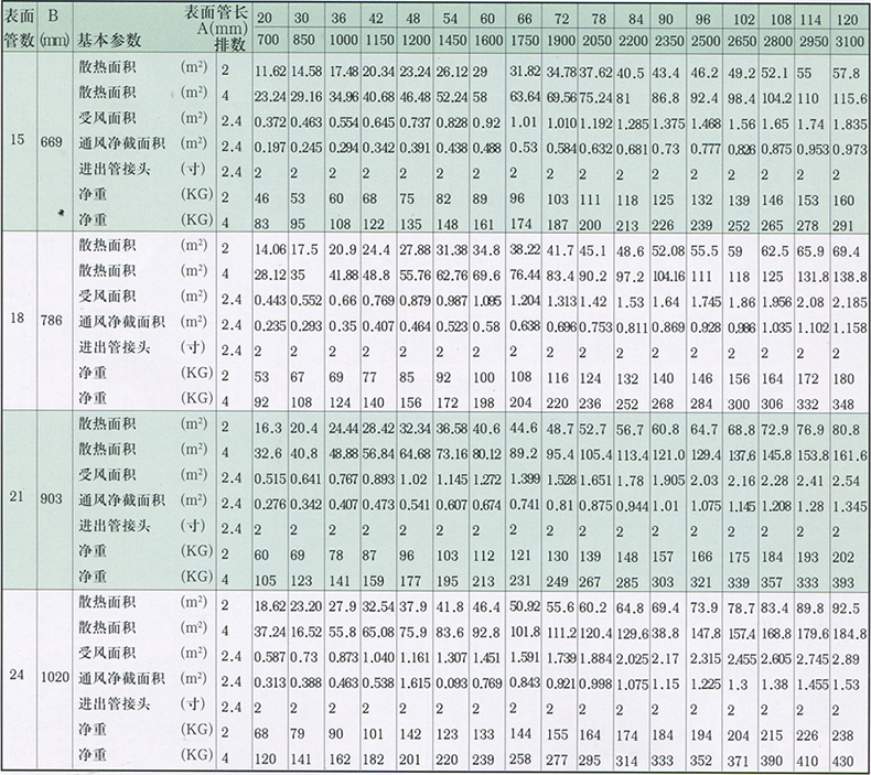 如采用四排,表面管数为10,管长为42英寸时,则为GLⅡ-4-10-42。